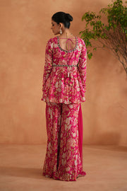 Fuchsia Embroidered Peplum Kurti, Garara and Dupatta