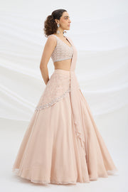 LIGHT PINK EMBROIDERED LEHENGA WITH BLOUSE AND ATTACHED DUPATTA