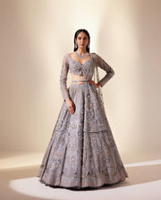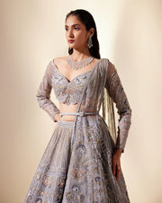 Metallic Blush lehenga with rhythmic floral embroidery. Comes with a dupatta