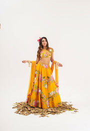 Ornate-nakshatra mustard hand embroidered lehenga set