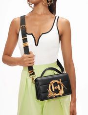A melange of fashion and functionality is displayed in The Midi Disco in Midnight. Handcrafted with PETA-approved vegan leather, the bag features linear quilts with an inflated effect. Sized to house your holiday essentials, the new introduction of OH Spring/ Summer 2023 can be carried in multi ways - as a handheld or shoulder bag. A detachable metal sling and vegan leather strap is shipped alongwith.