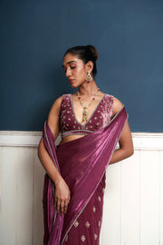 Traksh- wine shade embroidered pre-draped saree