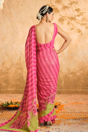 Doree: Pink Floral Chintz Saree with Unstiched Blouse Piece