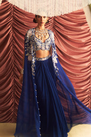 Embellished Cape, Choli and Draped Skirt Set