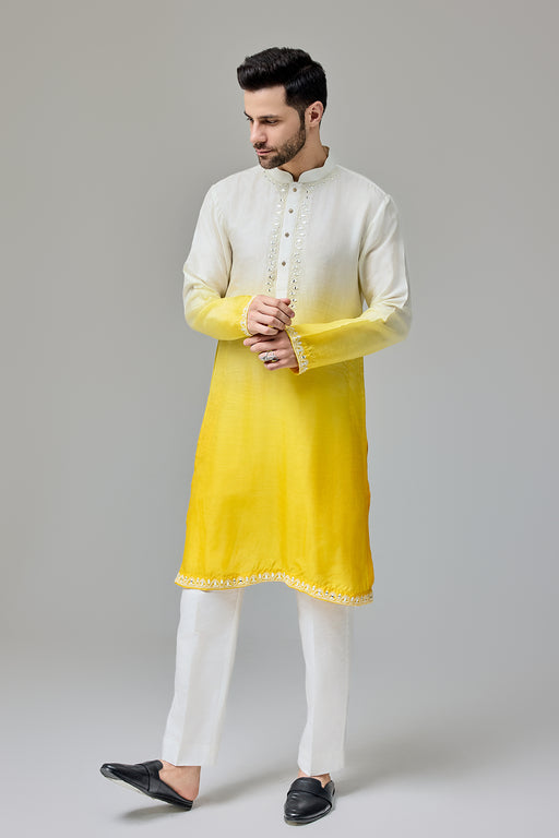 Yellow White Ombre Kurta With Dori And Mirror Work Fabric: Silk Blend Fit: Comfort No. of components: 2 Wash Care: Dryclean Delivery Time: 10 Days