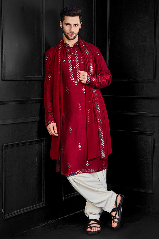 Red Mirror Kurta With Salwar And Dupatta
