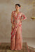 Featuring a beige sharara saree in georgette. It is paired with a printed hand-embroidered blouse and a belt.