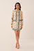Featuring an ivorry printed tie-up top and a matching overlap skirt.