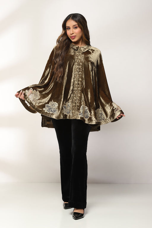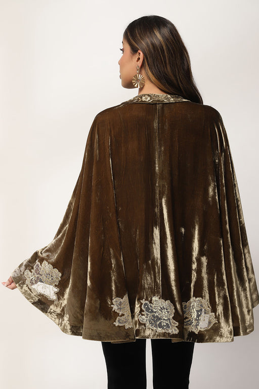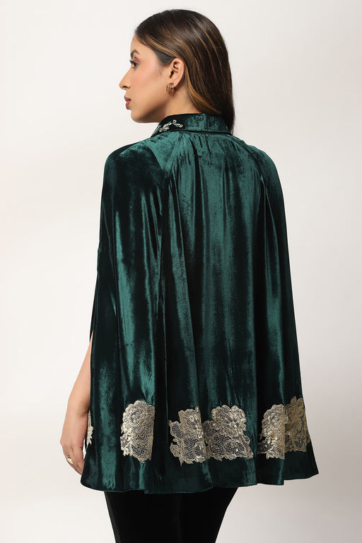 View full details• Fabric: 18% silk velvet • Lace: Dentelle de Calais-Caudry® certified French lace • Colour: Bottle Green • Fit: Free size cape • Details: Delicat...
