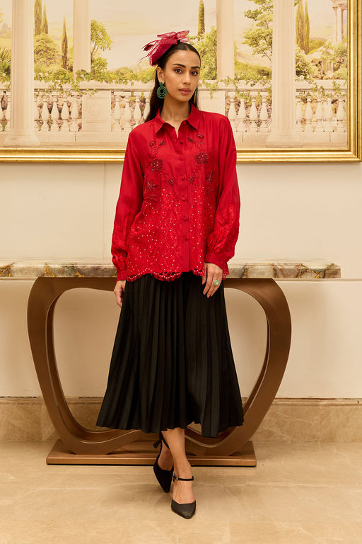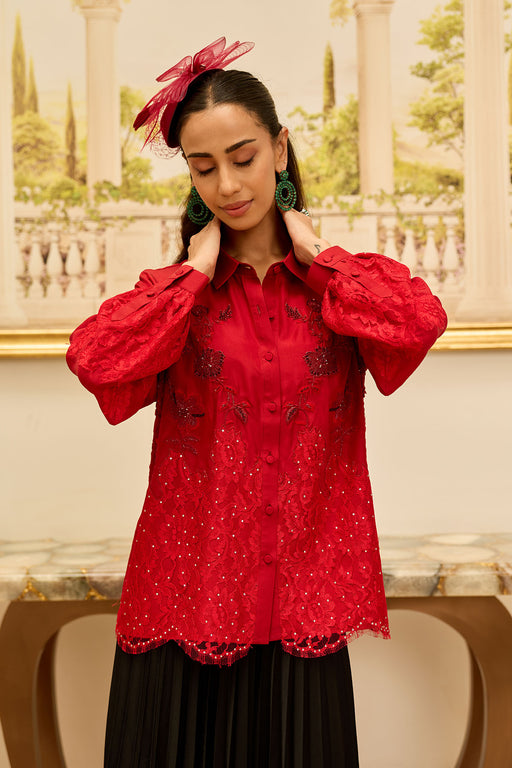 View full details• Fabric: 100% pure Twill Silk • Embroidery Craftsmanship Hours: 20 hours • Lace: Dentelle de Calais-Caudry® certified French lace • Colour: Cherry...
