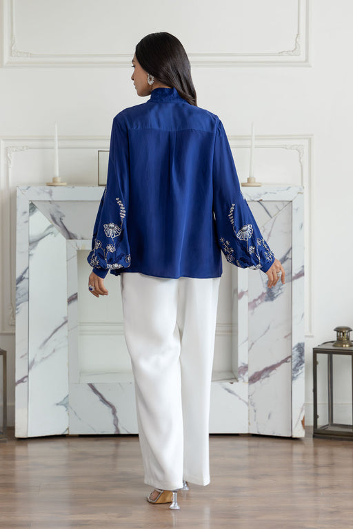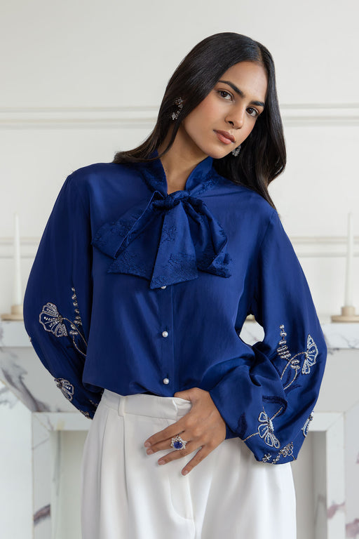 View full details• Fabric: 100% pure Twill Silk • Embroidery Craftsmanship Hours: 35 hours • Lace: Dentelle de Calais-Caudry® certified French lace on placket • Col...