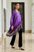 Ornate Purple Gradient Hand Embroidered french lace silk satin scarf top