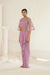 Kapda Dori's stunning Lavender ready to wear Dhoti set. The Lavender color adds a touch of glamour and sophistication to your look, while the soft Shesha crape fabric ensures you feel comfortable all day or night long. It is styled with aLavender blouse and net cape fully embroidered with stones,cutdana, beads and sequins and finished with tonal pearl lace.