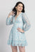 Azure Breeze Mini Dress By Julo Designs: A Light Sky Blue Mini With V-Neck, Balloon Sleeves, Soft Fabric, And Floral Pattern. Breezy Elegance Meets Comfort For The Perfect Chic Look.