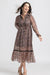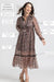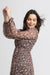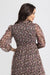 Elevate Your Wardrobe With The Cocoa Blossom Midi Dress By Julo Designs. A Brown Base With White And Pink Florals, Balloon Sleeves, Mandarin Collar, And Semifitted Cut For Effortless Style.