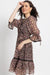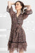 Embrace Effortless Style With Julo'S Cocoa Blossom Surplice Mini Dress. Brown Floral Base, 3/4 Puffed Sleeves, And Surplice Neckline Make It Perfect For Casual Outings With A Touch Of Sophistication.