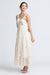 Indulge In Elegance With The Crimson Comfort Sleeveless Maxi Dress By Julo Designs. Yellow Floral Motifs, Lace Details, And A Fit-And-Flare Silhouette Create A Timeless, Graceful, And Romantic Look.