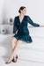The Dark Emerald Mini Dress By Julo Designs Features Rich, Shimmering Fabric, Soft Gathers, Full Sleeves, And A Surplice Neckline, Offering Timeless Elegance And Effortless Charm For Any Soirée.