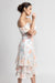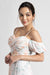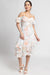 Introducing The Exquisite Ivory Offshoulder Midi Dress By Julo Designs. With White And Peach Hues, An Abstract Pattern, Sweetheart Neckline, And Puff Half Sleeves, It’S A Timeless Wardrobe Addition.