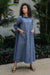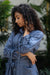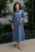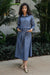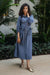 The maria dress is made from our chambray fabrication. It has a cotton denim feel which makes it suitable for a semi formal occasion. It is a front open button down A line dress with flexible sleeve detailing.