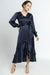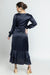 Embrace Luxury With Julo'S Navy Nights Ruffle Midi Dress. Premium Satin In Deep Blue, Ruffle V-Neckline, Cuffed Long Sleeves, And Zipper Closure Make It Perfect For Formal Occasions.