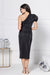 The "Noir Glitz Midi Dress" By Julo Designs Stuns With Luxe Black Fabric, Subtle Sparkles, A Bold One-Sided Puff Sleeve, And A Sleek Midi Silhouette—Perfect For Unforgettable Nights.