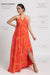 Step Into Elegance With Julo Designs' Playful Orange Strap Maxi, Featuring A Vibrant Orange Base, Pink Abstract Pattern & Comfy Shoulder Straps—Perfect For A Chic Look.