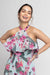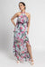 Drape Yourself In Elegance With Julo'S Seafoam Blue Maxi Dress. Pink, Orange, And Green Abstract Pattern, Halterneck Design, And Semifitted Cut Make It Perfect For Any Occasion.