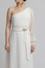 Introducing Julo'S Snowflake White Midi Dress—Offwhite With Delicate Snowflake-Inspired Patterns, Sleeveless Design, And Long Elastic Smocking Cuffs For A Captivating, Asymmetrical Look.