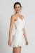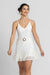 Introducing Julo'S Snowflake White Mini Dress—Offwhite With A Delicate Snowflake-Inspired Pattern, Sleeveless Design, V-Neck, And Spaghetti Straps, Blending Timeless Elegance With Modern Allure.