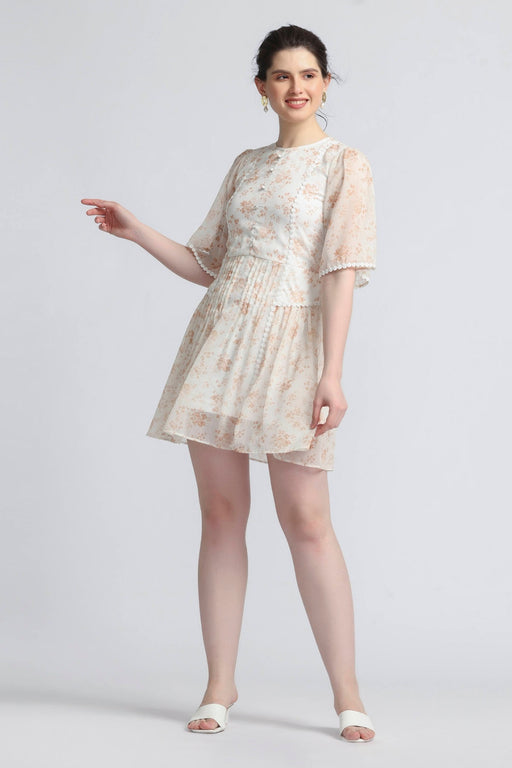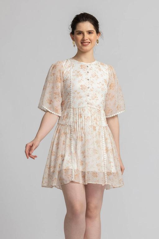 Step Into Charm With The Whispering Sunshine Mini Dress By Julo Designs. In Serene White, Its Buttoned Round Neck, Cuffed Sleeves, And Semifitted C...