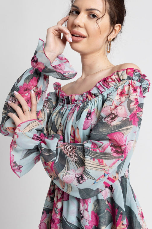 View full detailsRadiate Sophistication With The Seafoam Blue Midi Dress By Julo Designs. Featuring A Playful Abstract Print, Off-Shoulder Neckline, And Comfortable...