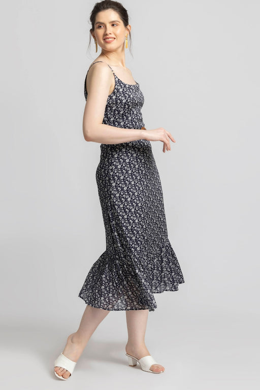 View full detailsDiscover Charm With Julo'S Blue Motif Midi Dress. Deep Blue, White Floral Motifs, Squared Scoop Neckline, And Flattering Fit Offer A Relaxed Yet Ch...