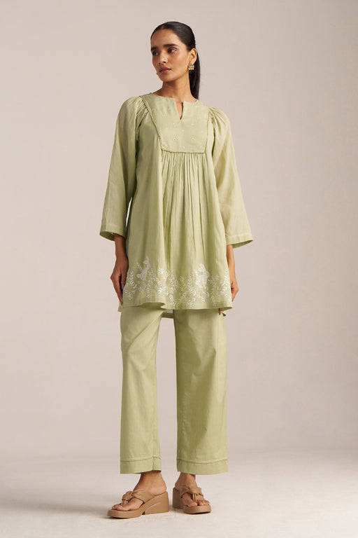 View full detailsSummer daily wear kurta with side panel gathring, to style your daily office wear, pair it with wide leg cotton bottom. Component : Top and Bottom...