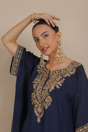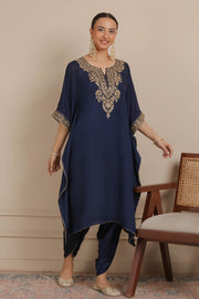 Midnight Blue Neck Embroidered Kaftan & Dhoti Set