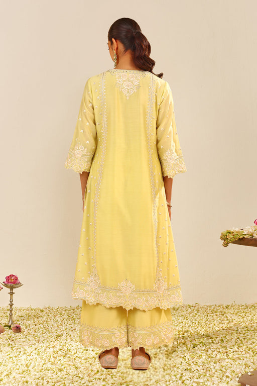 View full detailsSumaiya - A-Line Kurta With Palazzo Color: Lemon Yellow Fabric: Kurta & Bottom - Silk Chanderi Washcare: Dry Clean Only No. Of Pcs: 2 Deliver...