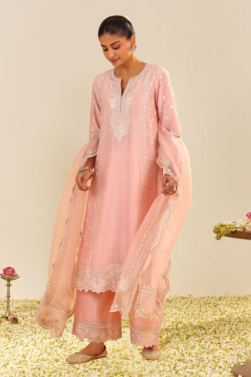 View full detailsSumaiya - A-Line Kurta With Palazzo Color: Blush Pink Fabric: Kurta & Bottom - Silk Chanderi Washcare: Dry Clean Only No. Of Pcs: 2 Delivery ...