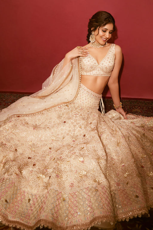View full detailsEmbrace elegance with our stunning lehenga set, featuring a beautifully crafted sleeveless blouse that showcases intricate e...