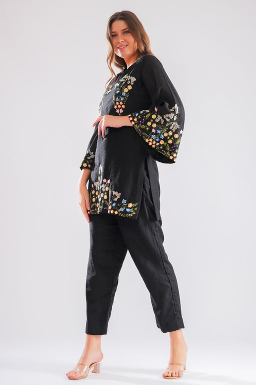 View full detailsEmbroidered Casual Co-ord Set in Black – Designed in luxurious Chanderi silk, this stylish co-ord set features intricate embroidery, blending elega...