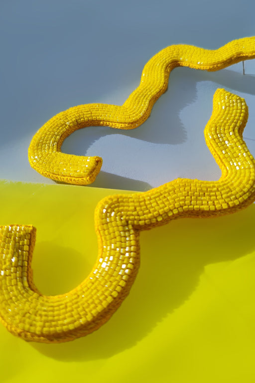 View full detailsIntroducing our gorgeous hoop earrings that exude both elegance and playfulness! With a delicate pastel green beadwork and a striking bright yellow...