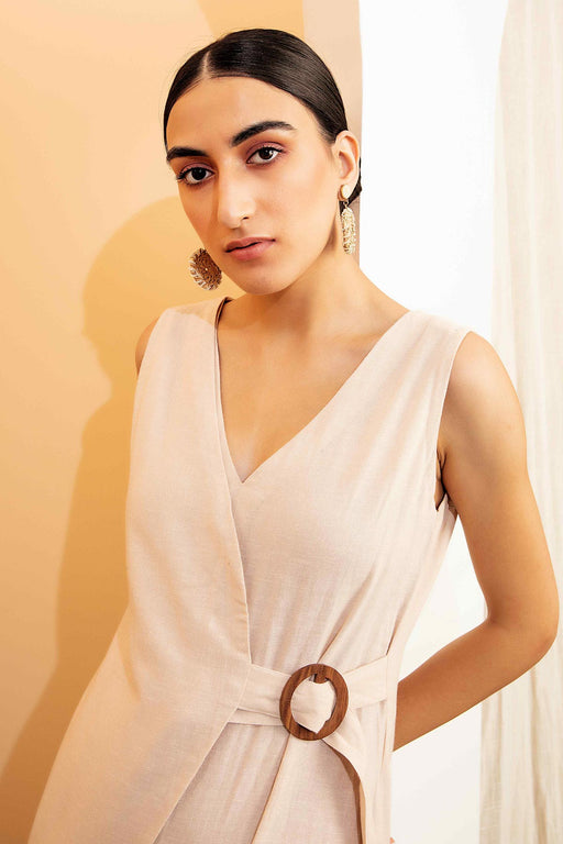 Description - Full set includes Jumpsuit - Color: Oatmeal                         - Fabric Description: Top- 100% Linen Jacquard        ...