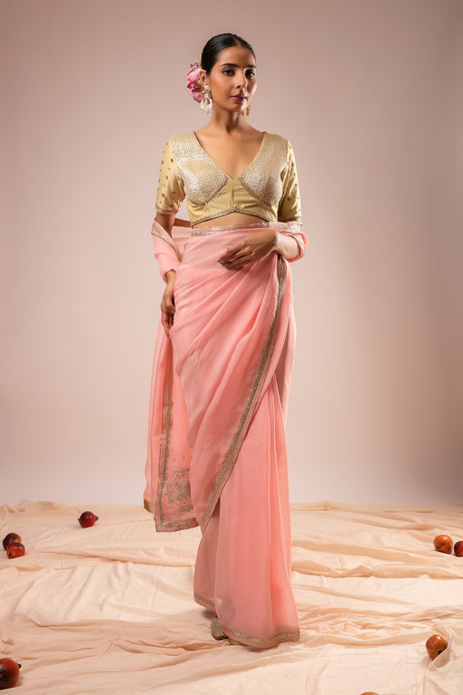 View full detailsPink Embroidered Saree Set : Organza Saree with Machine and Hand Embroiderey paired with Hand and Machine Embroidered stitched blouse Fabric : Sare...