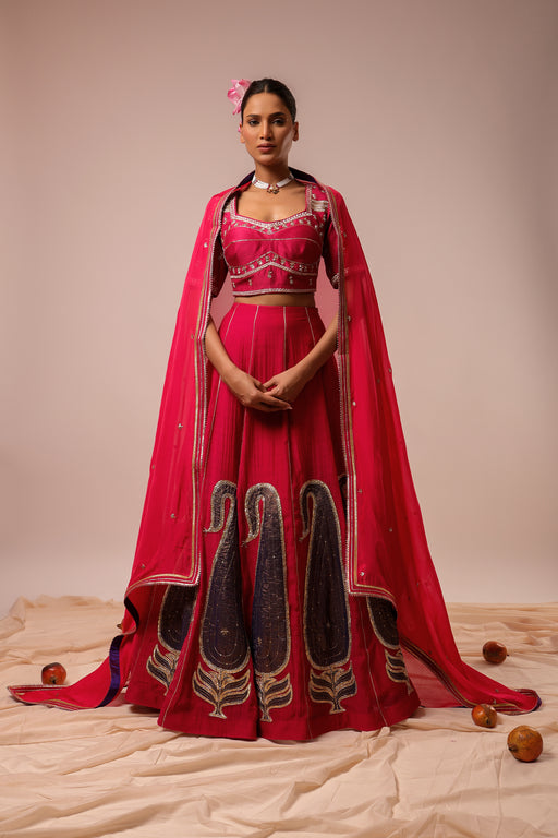 View full detailsMagenta Pink Lehenga Set: Hand Embroidered Silk Chanderi Lehenga Set (12 Kali) paired with Pure Silk Chanderi Hand & Machine Embroidered Blouse...