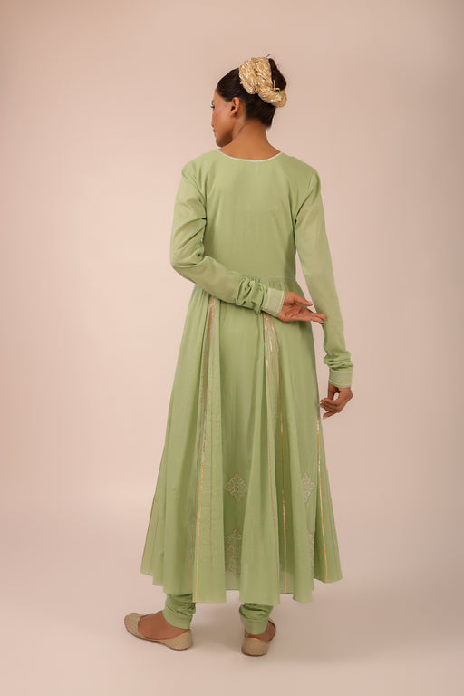 View full detailsAqua Blue Cotton Overlay Anarkali: Machine Embroidered Pure Cotton Overlay Anarkali paired with pure cotton churidar and Kota doriya dupatta Fabri...