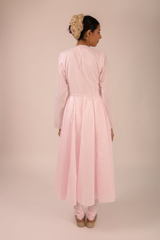 Cotton Long Anarkali Jacket Suit Set: Plain sleeveless cotton kurta with Long Anarkali jacket paired with churidaar and Kota Doriya Dupatta Fabric ...