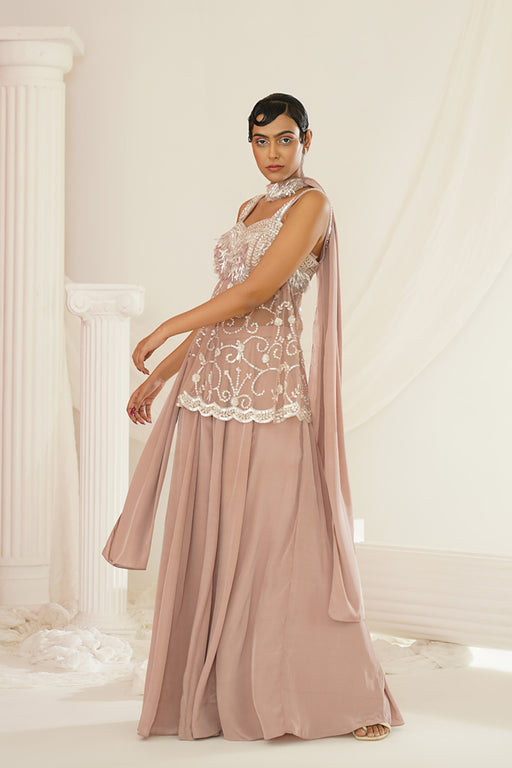 View full detailsKapda Dori's stunning blush pink ready to wear armani satin Dhoti set. The blush pink color adds a touch of glamour and sophistication to your look...