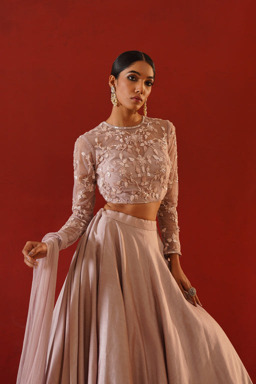 Kapda Dori's stunning blush pink dupion silk lehenga. The blush pink color adds a touch of glamour and sophistication to your look, while the soft ...