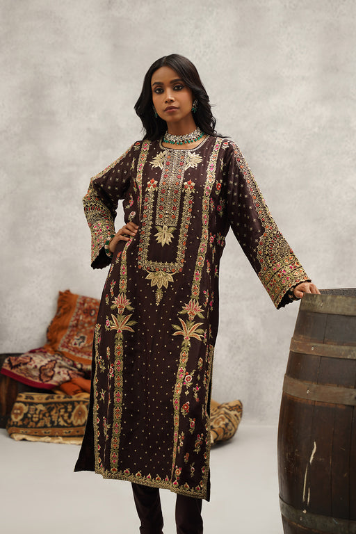 View full detailsKapda Dori's stunning black skirt set, beautifully adorned with all over sequins embroidery fabric. The skirt features a full-length stuctured flar...