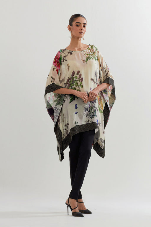 View full detailsBOTANICAL PRINTED KAFTAN IN SILK Colour: MULTI COLOUR Fabric: MODAL SILK Care: DRY CLEAN ONLY