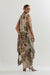 BOTANICAL PRINTED DRAPE SKIRT PAIRED WITH STRETCH BUSTIER AND PRINTED CAPE